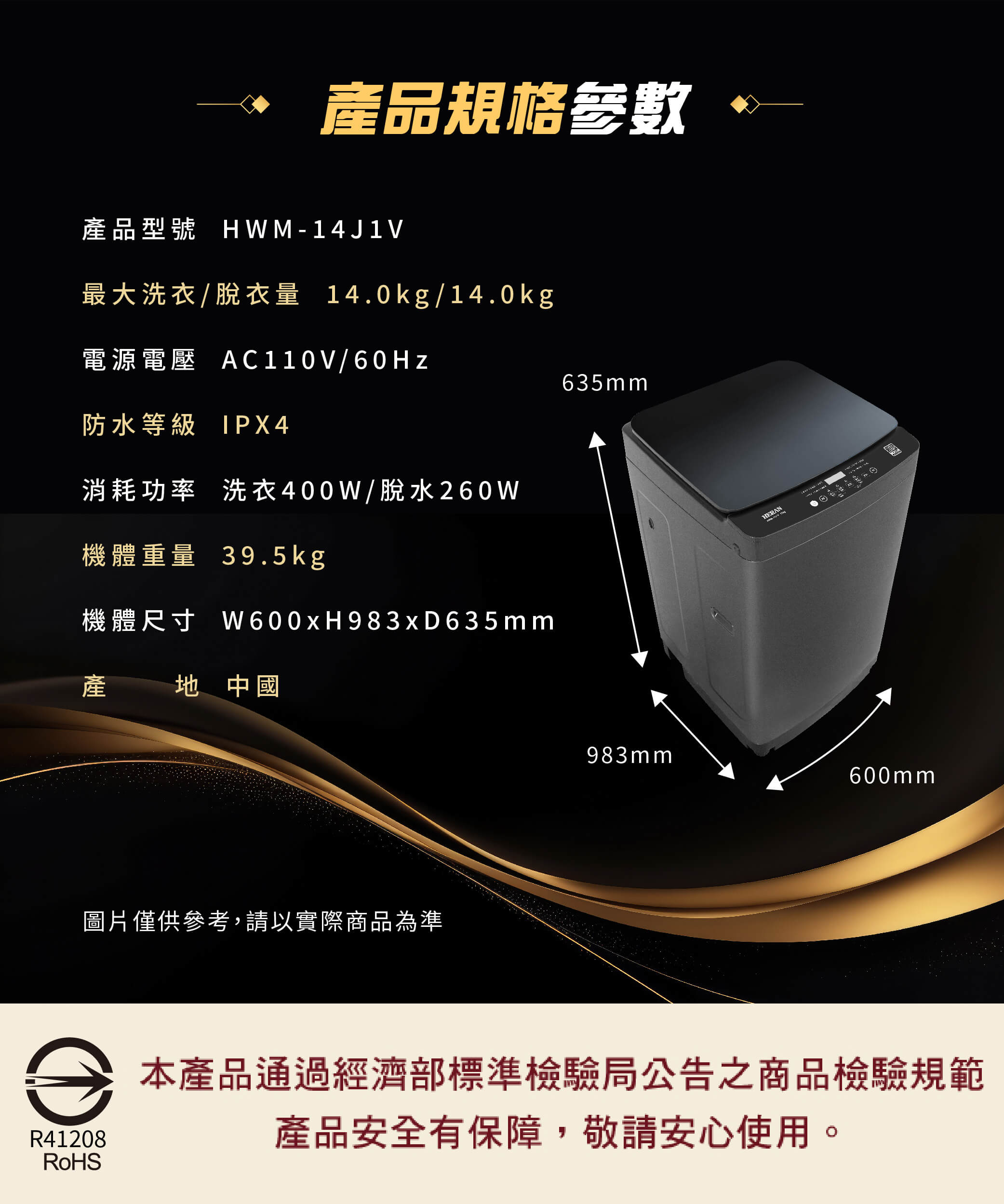 禾聯14KG直流變頻洗衣機 HWM-14J1V