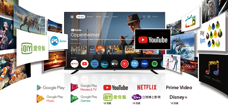 | | 內建影視平台 | Netflix /Prime Video /YouTube/YouTube Music (遙控器一鍵啟動) |