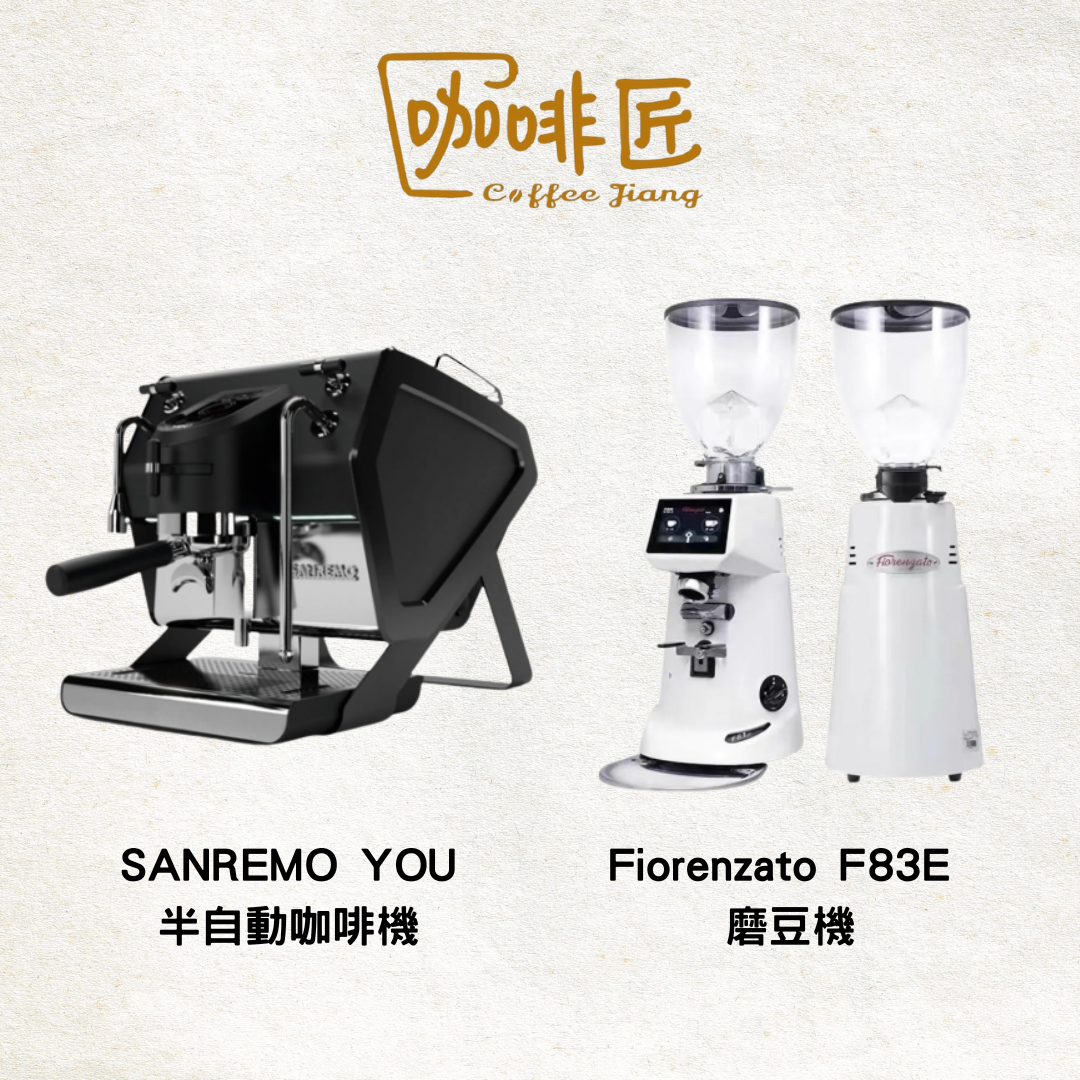 Sanremo YOU是一台功能相當全面,富有使用樂趣的單孔咖啡機 Fiorenzato F83E 磨豆機全彩觸控螢幕,高質感,一鍵簡易操作,即可達到標準化要求,半自動咖啡機必備專業咖啡設備。