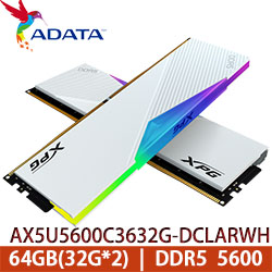 威剛 64G(雙通32G*2)D5-5600/CL36 Lancer RGB白(AX5U5600C3632G-DCLARWH)