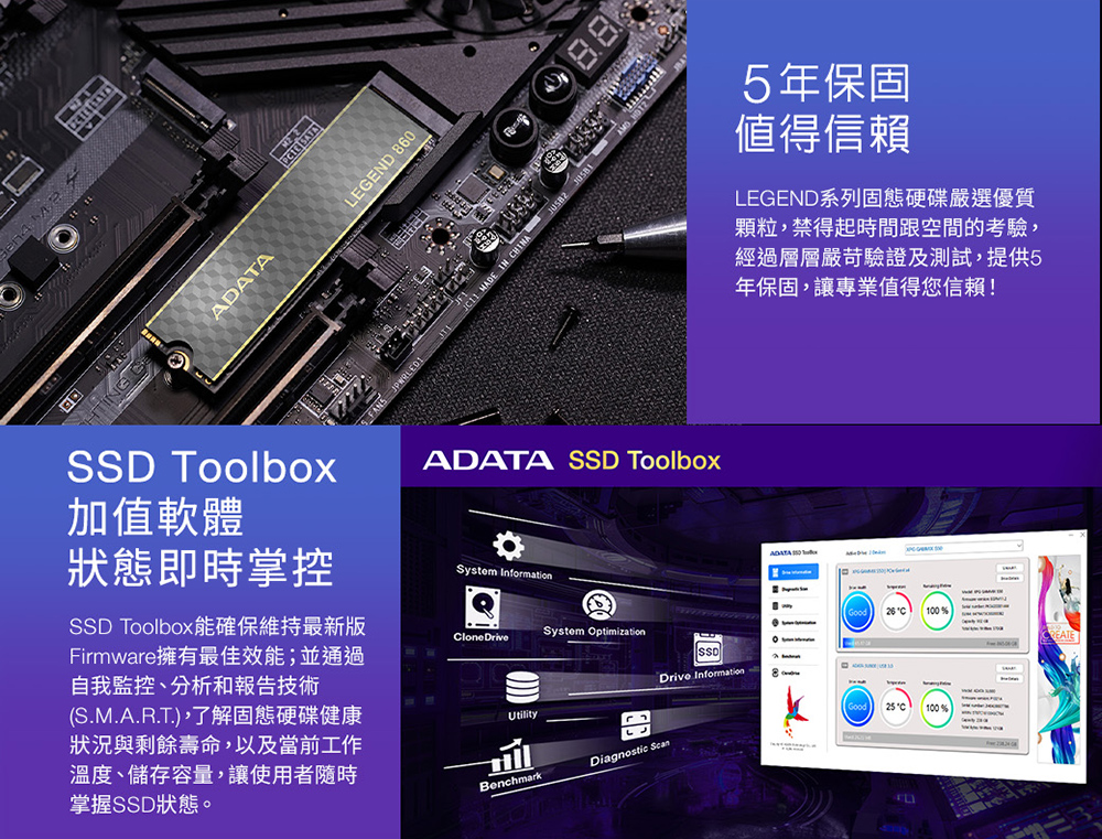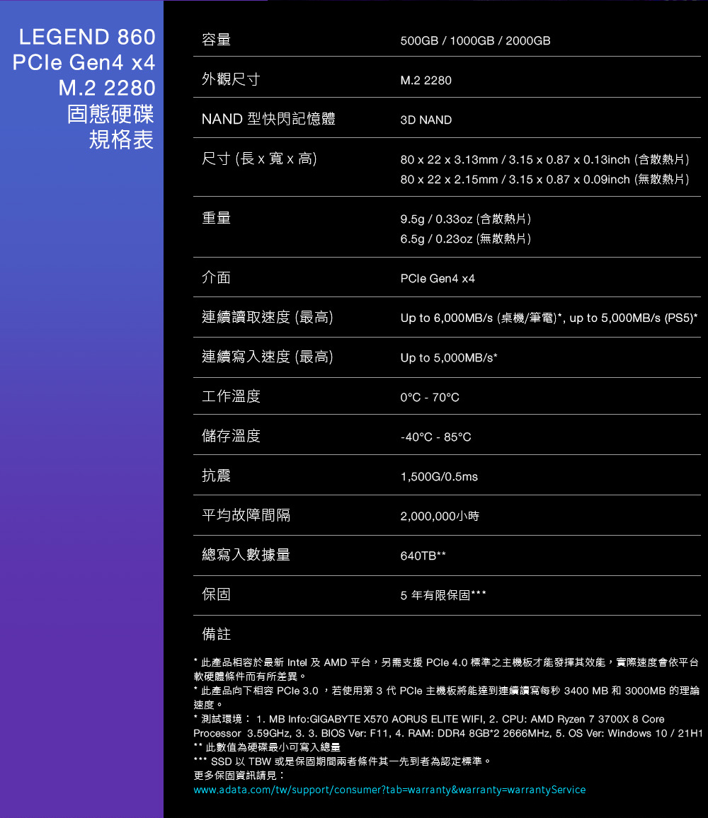✦ PCIe Gen4x4傳輸介面 ✦ 支援Intel和AMD最新平台 ✦ 五年有限保固