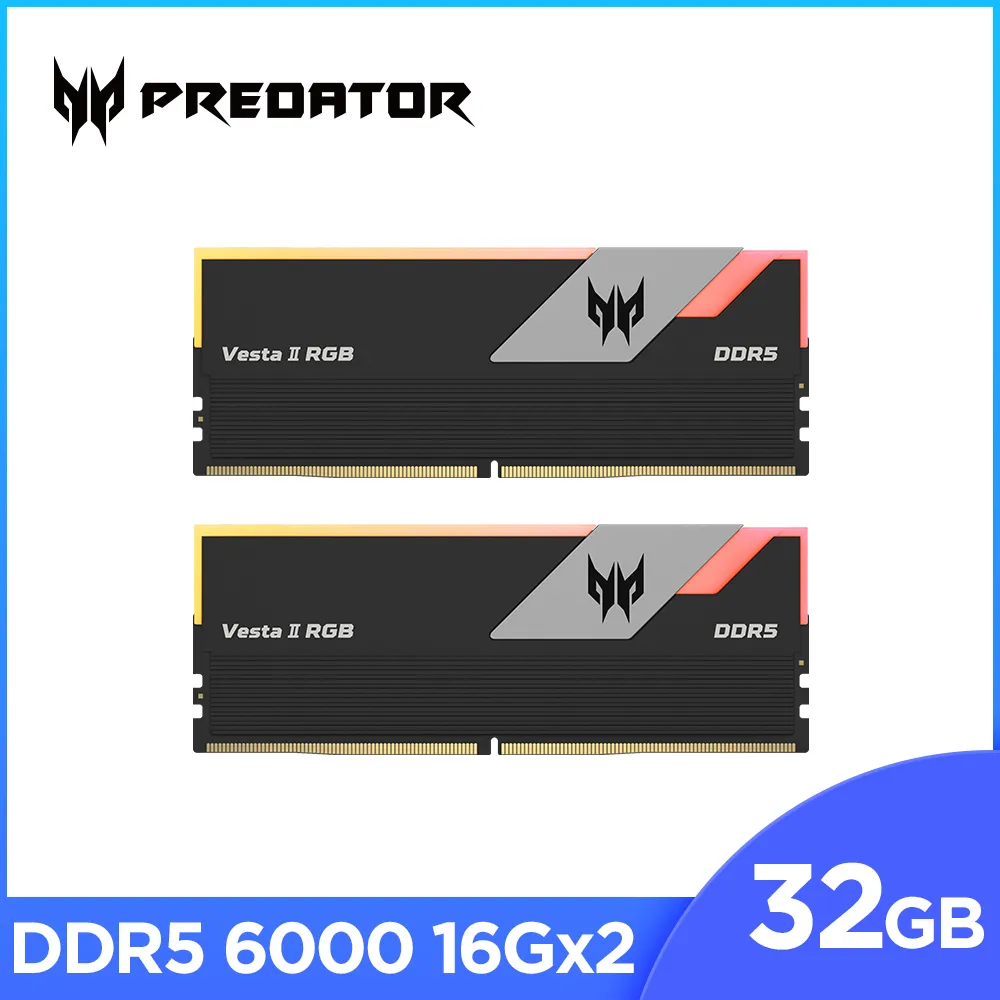 宏碁 Acer Predator Vesta II RGB 32GB(雙通16GB*2)DDR5 6000黑/CL30