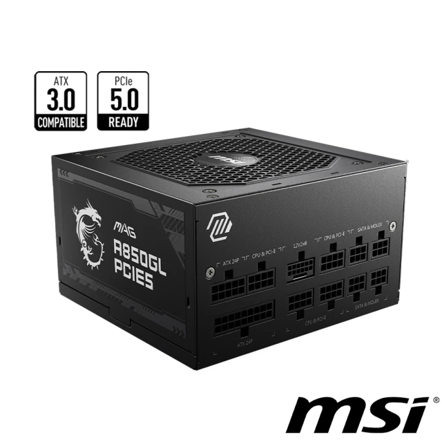 微星 MAG A850GL PCIE5 850W 雙8/金牌/全模組/ATX3.0/7年保