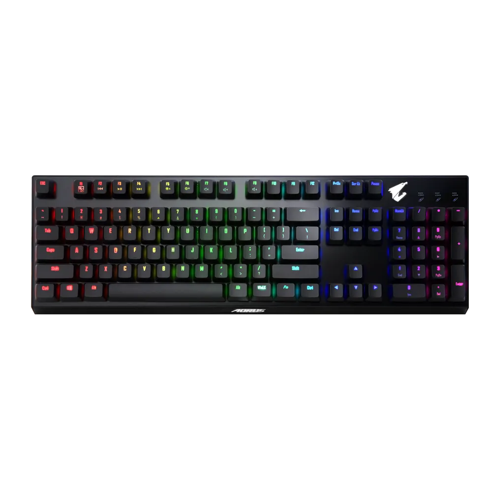 光速傳輸 反應時間0.03ms 點擊壽命高達1億次 防潑水 清潔不費力 可換軸設計 客製專屬手感 專利光軸技術 告別鍵盤連點失誤 內建高品質彈簧 按壓更省力 單點全彩背光 支援1677萬色光彩變化 全按鍵支援巨集功能 AORUS Engine 輕鬆設定背光及巨集 全區防鬼鍵 按鍵組合零衝突 無上蓋懸浮設計 簡約俐落 高密度編織線材 耐用抗拉扯 搭載線路溝槽 線路不再惱人雜亂
