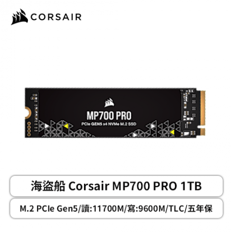 海盜船 Corsair MP700 PRO 1TB Gen5/讀11700/寫9600【五年保】