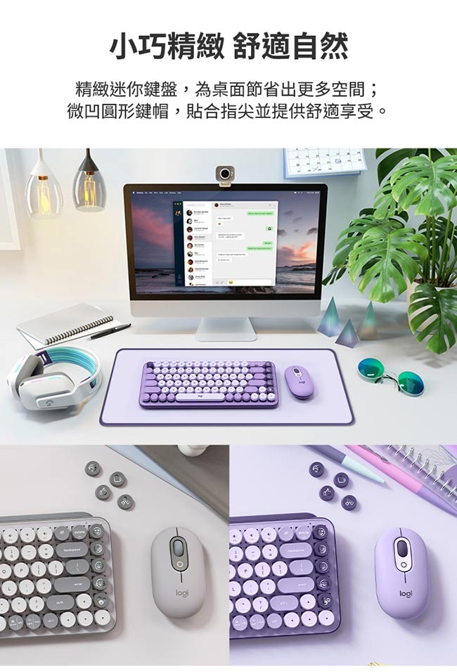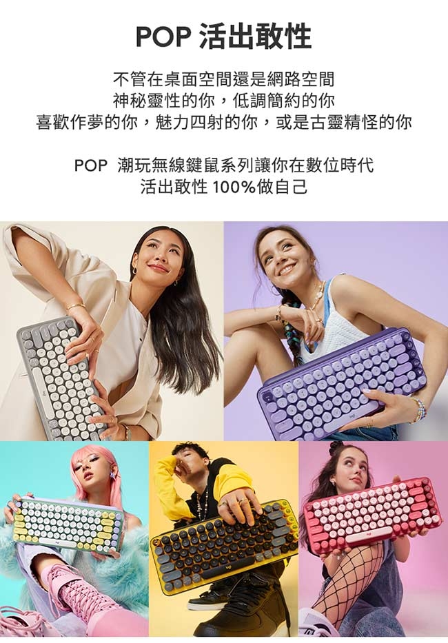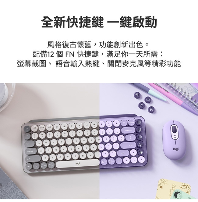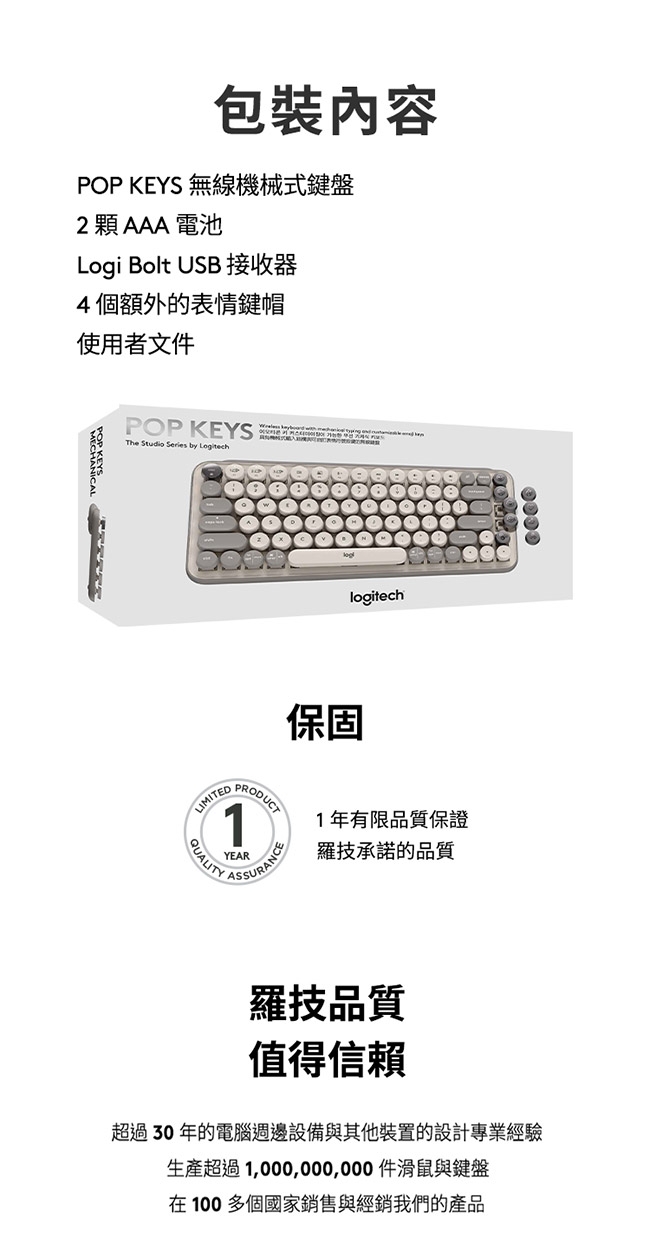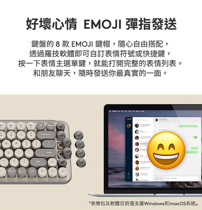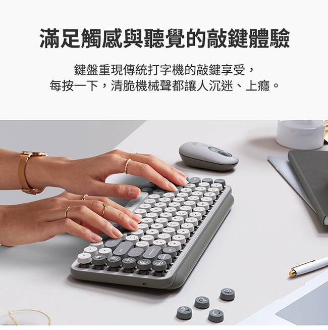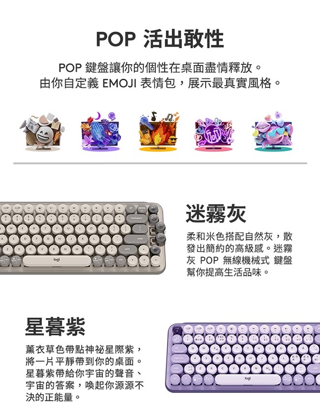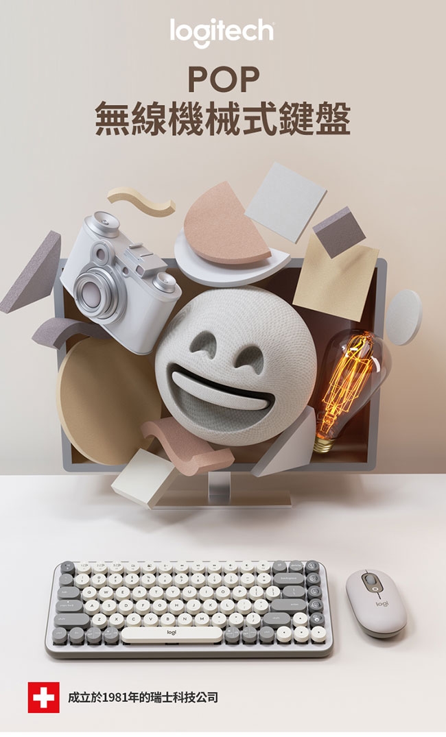 羅技 Pop Keys 無線機械式鍵盤(迷霧灰)/無線/EMOJI按鍵/中文/茶軸/打字機鍵帽
