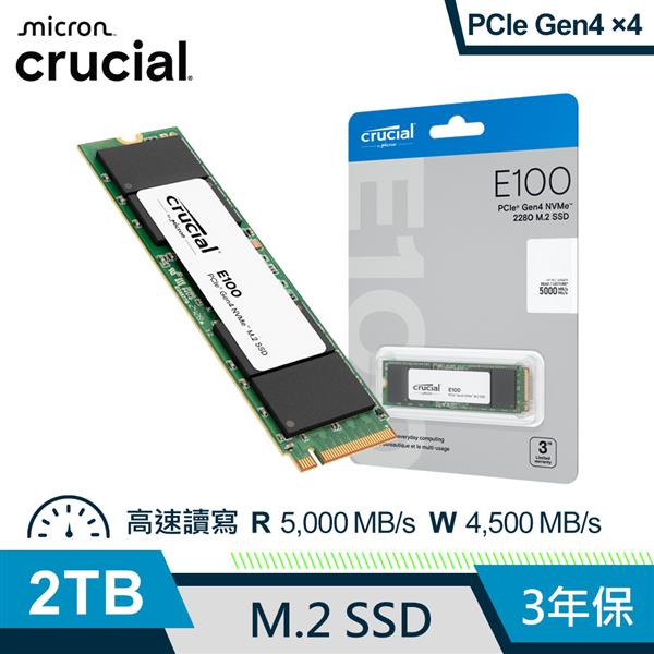 美光 Micron E100 2TB/Gen4 PCIe 4.0/讀5000/寫4500/QLC【五年保】