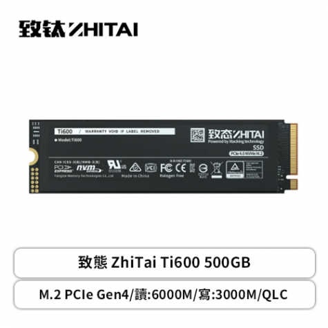 致態 ZhiTai Ti600 500G/Gen4/PCIe 4.0/讀6000/寫3000/QLC【五年保】