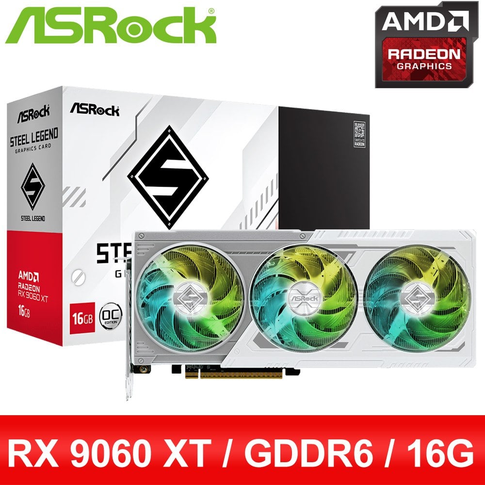 華擎 RX9060XT Steel Legend 16GB OC(3320MHz/30cm/三風扇/註冊五年保)