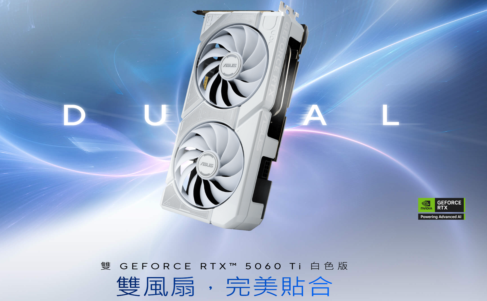 華碩 DUAL-RTX5060TI-O16G-WHITE(2632MHz/23cm/雙風扇/註冊四年保/白)