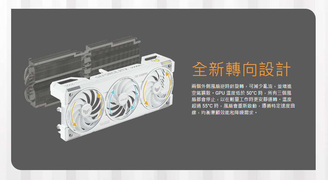 華碩 TUF-RTX5070TI-O16G-BTF-WHITE(2610MHz/33cm/三風扇/白)背插/16PIN兩用電源