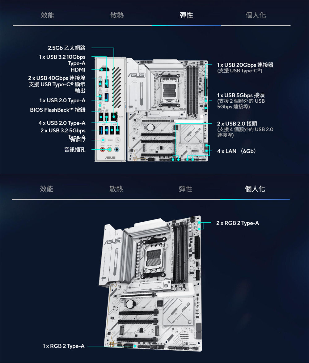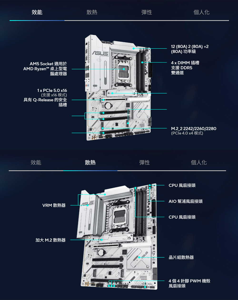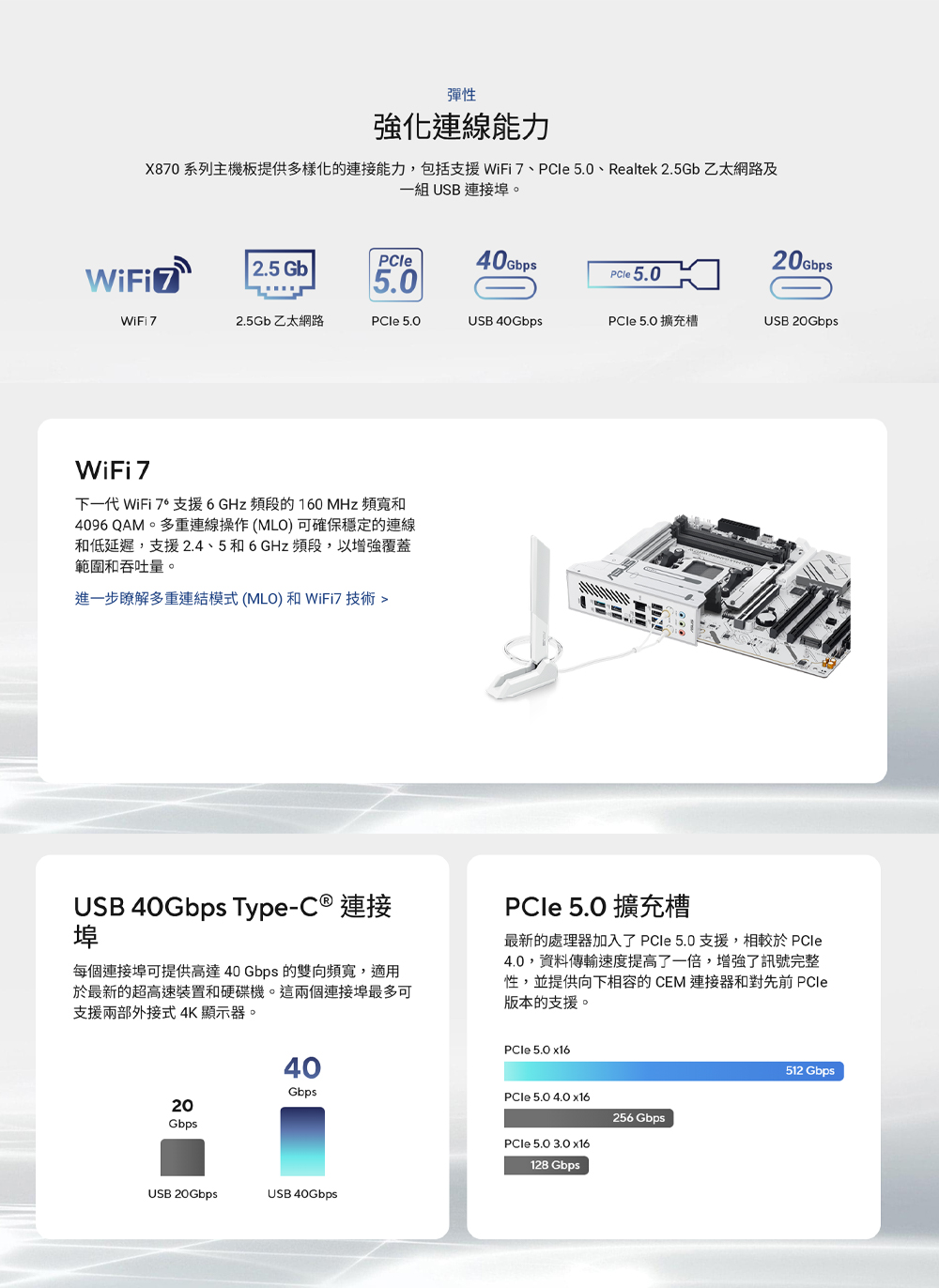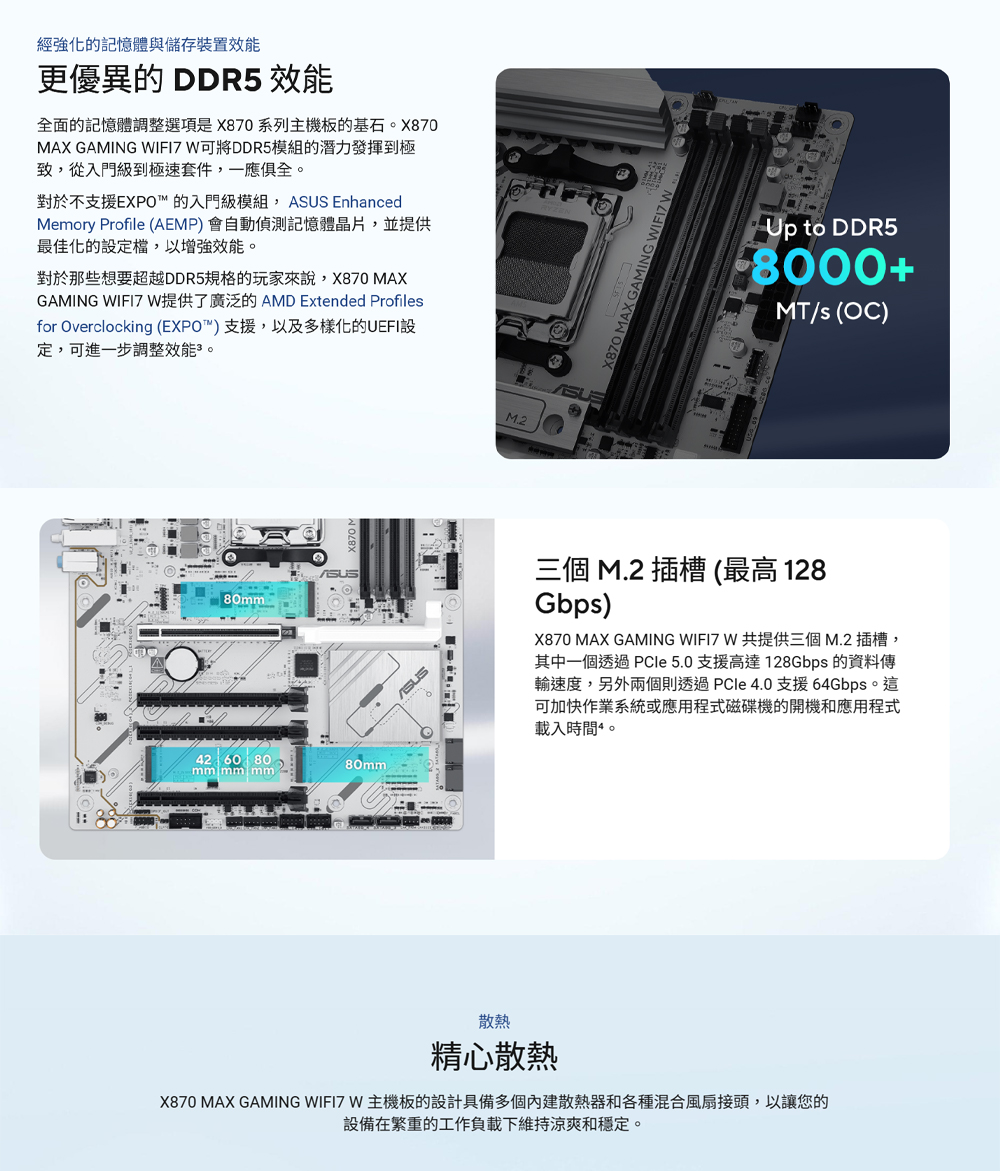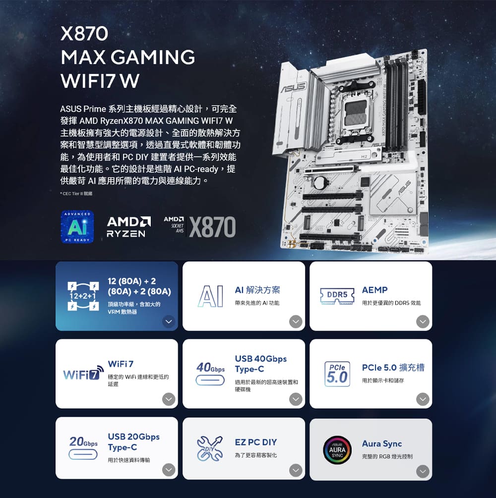 華碩 X870 MAX GAMING WIFI7 W(ATX/LAN2.5G+Wi-Fi 7/註五年/銀白)12+2+1相