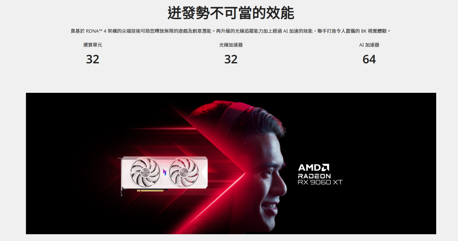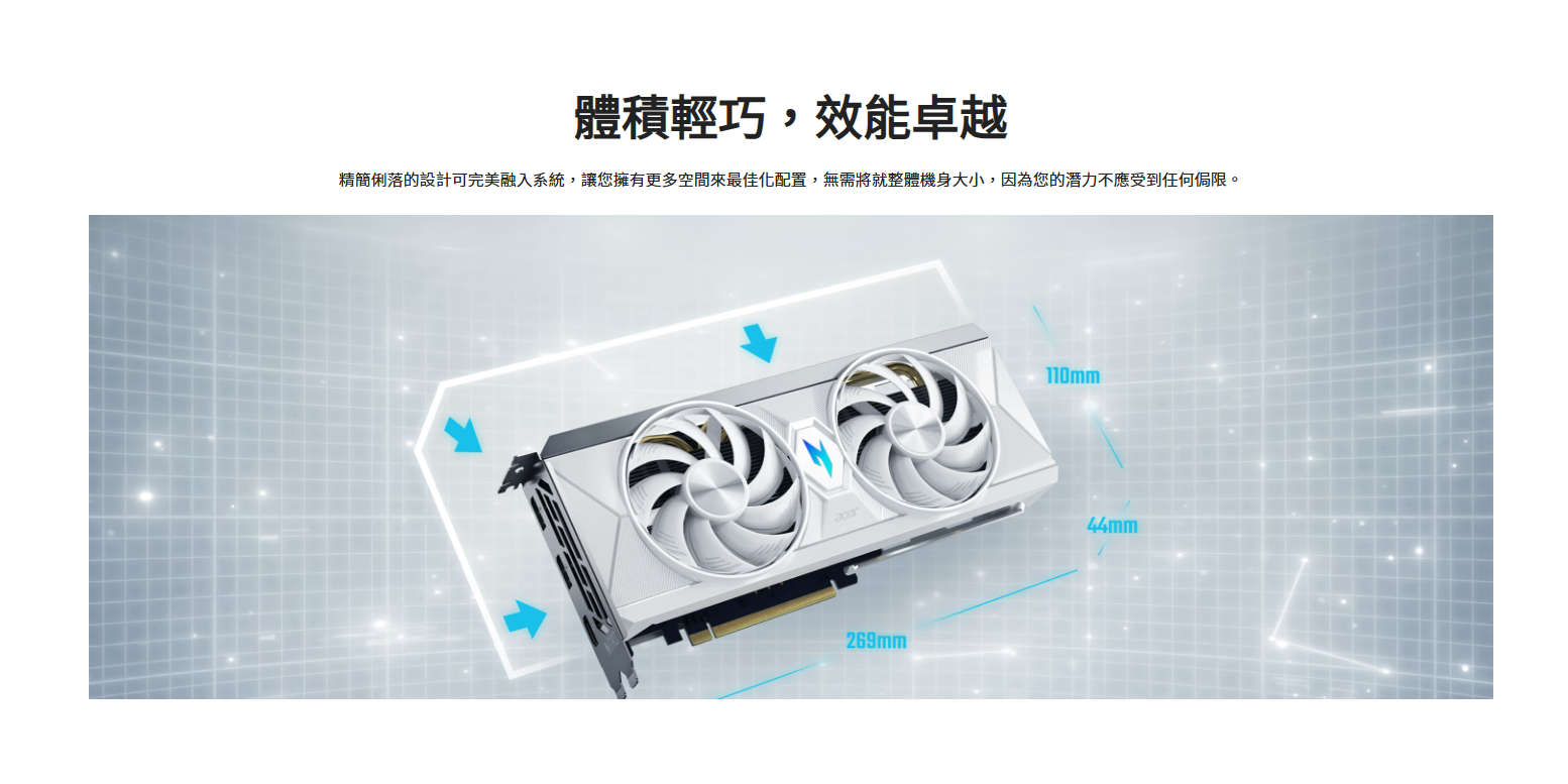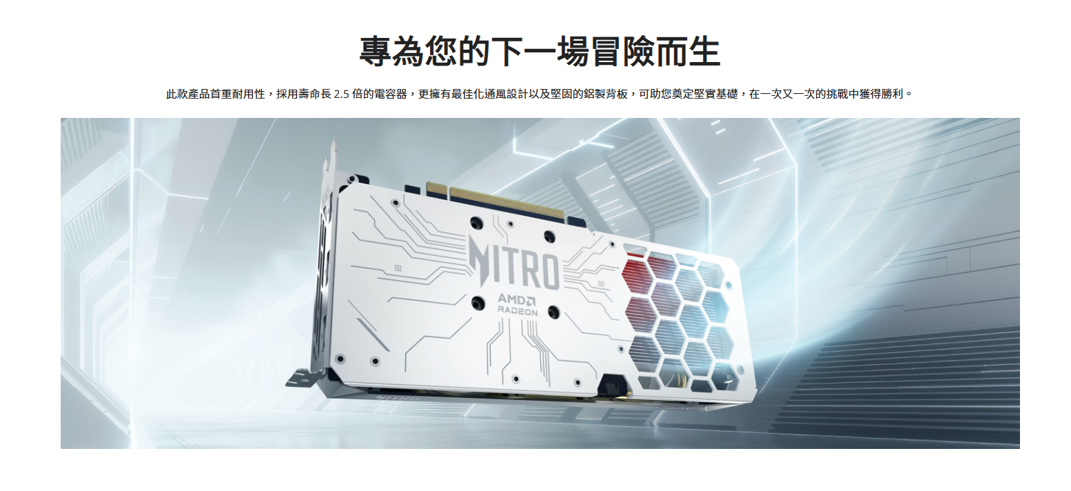 專為遊戲玩家和創作者而設計,先進 AMD RDNATM 4 架構可為您提供 8K 沉浸式視覺效果、光線追蹤以及 AI 加速效能,並採用簡約酷涼的白色外觀。