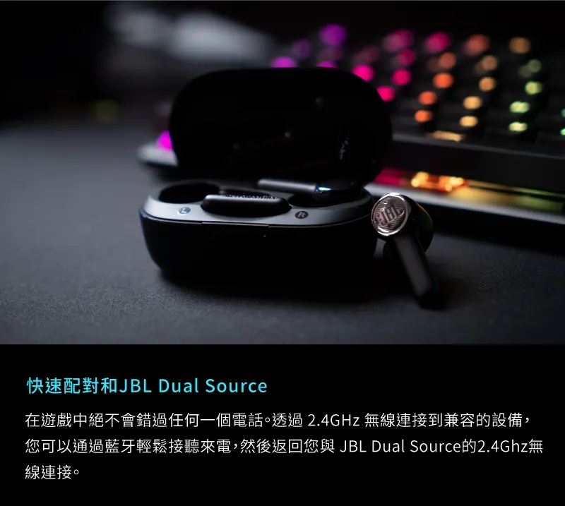 JBL Quantum TWS 真無線降噪電競耳機/附Usb-C接收器/ANC自適應降噪/IPX4防潑水