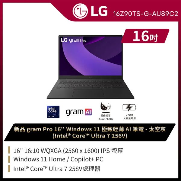 LG Gram Pro Ultra 7-258V/32G/1T/16吋 太空灰 16Z90TS-G.AU89C2