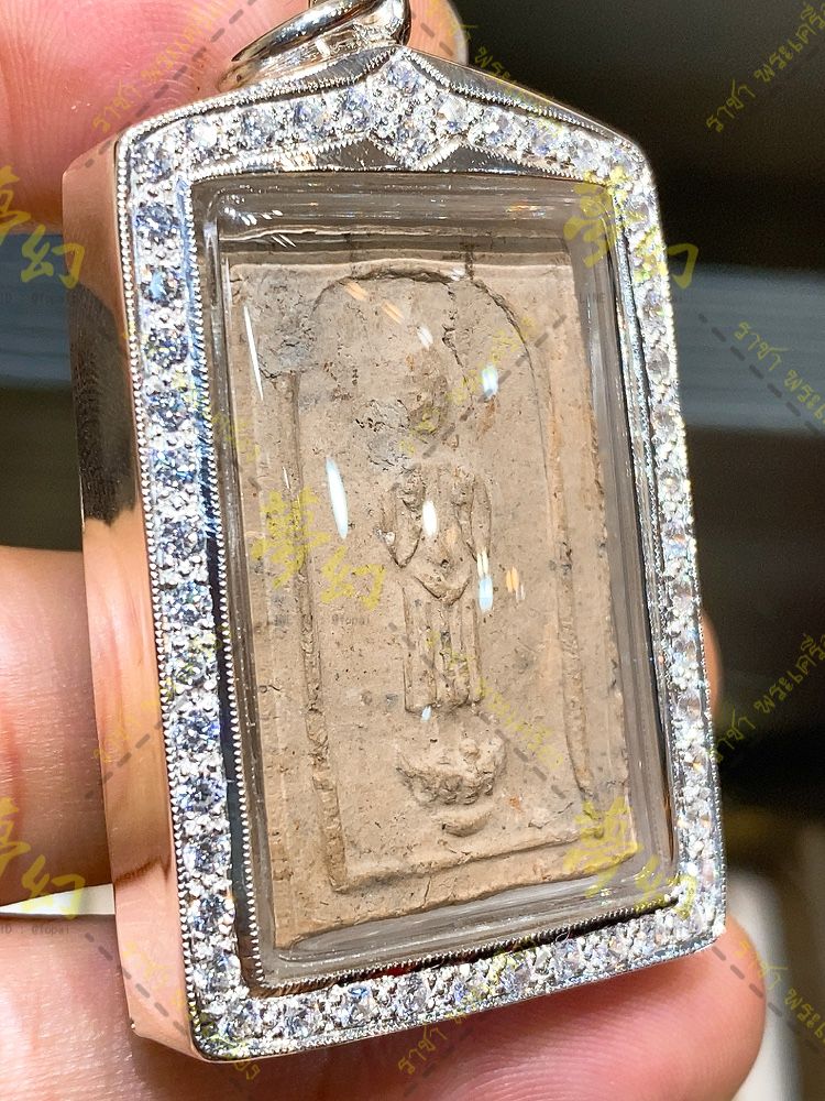 夢幻佛牌@fopai 此尊平定佛督造特別使用了貝葉經書灰、索羅馬哈彭聖粉(solomahaprom),索羅馬哈彭聖粉為灰中帶黃的性質,佛牌背後為納瓏經文,而這場法會加持十分特別,Wat Saranat寺廟為了籌建成功佛大佛像特別進行了二次大法會,冠咩布倫2499年在該法會過程中特別換穿7層白7層綠的衣服。夢幻佛牌