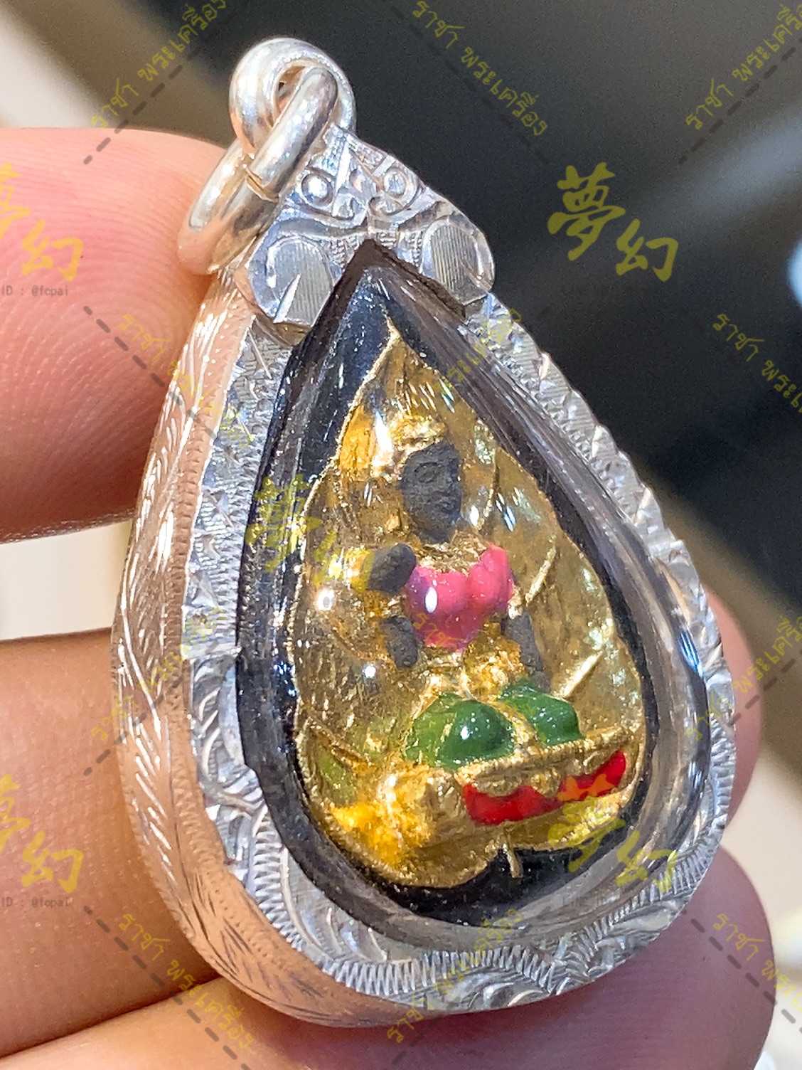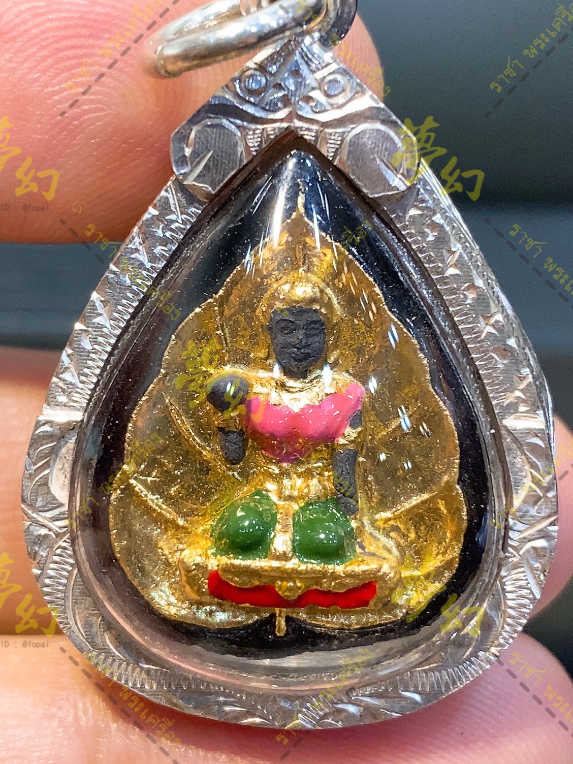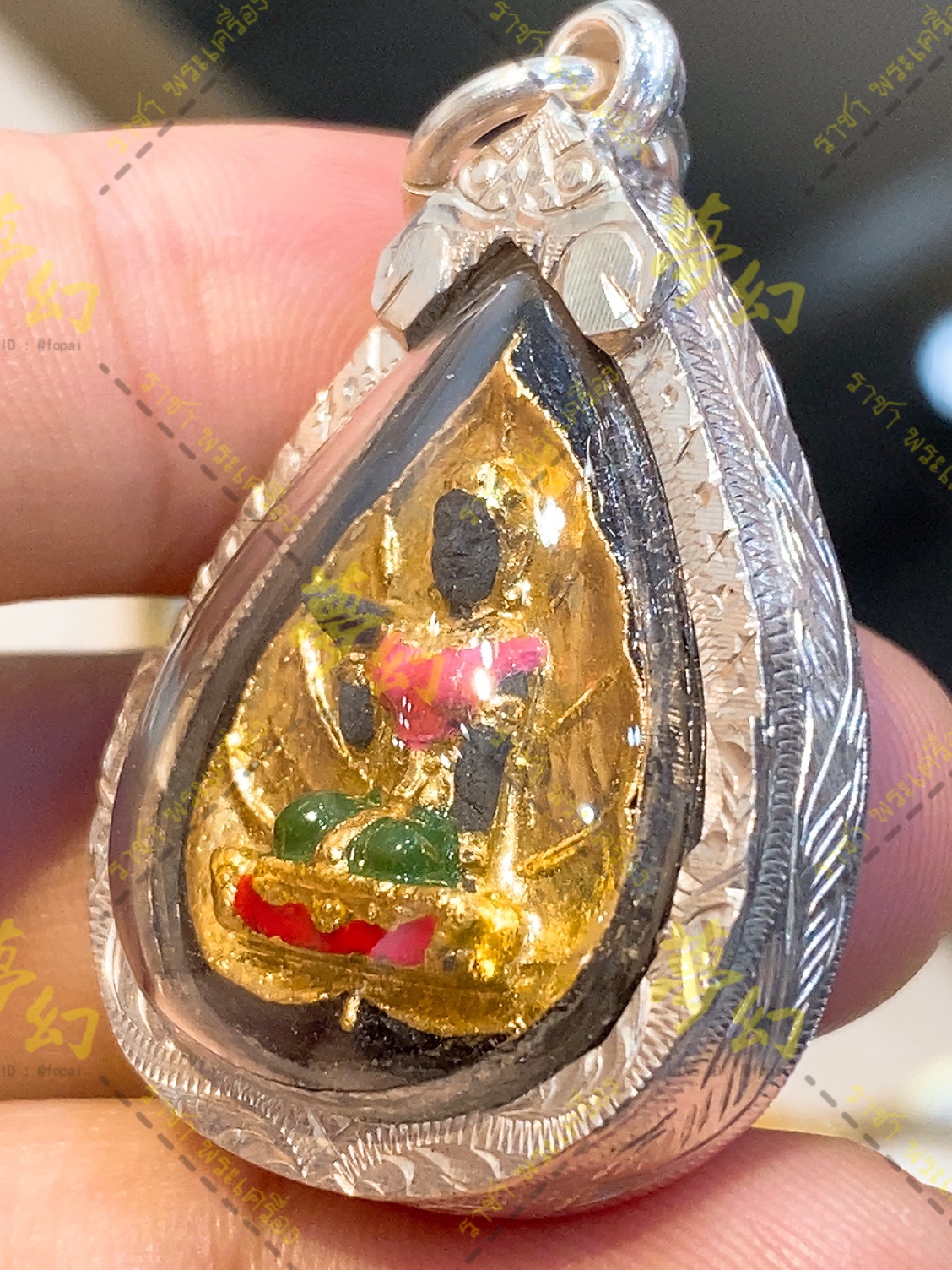 此尊招財女神舉手的法相,代表著招來錢財,龍婆坤師傅特別選定吉祥稍哈日進行開光儀式,並且使用紐當黑靈木所製成,具有強大的超凡法力,亦可避邪、擋降、改善不好的運勢以及淨化磁場。(夢幻佛牌)