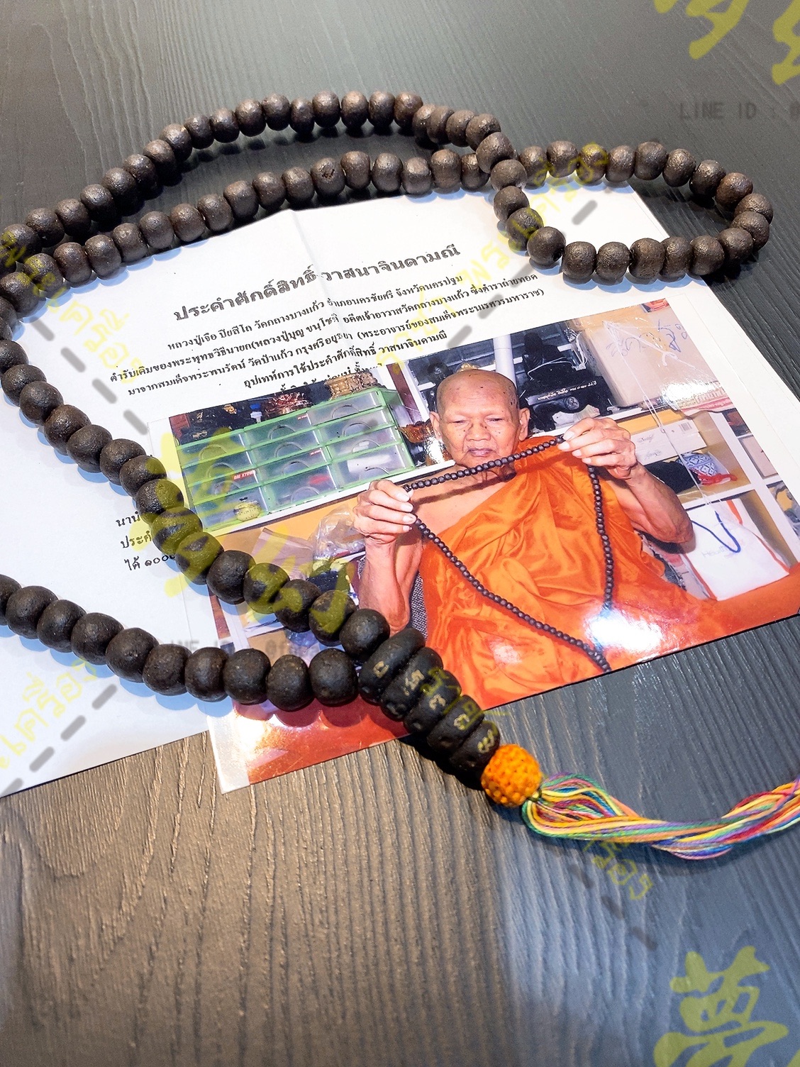 金達曼尼念珠為龍婆遮師傅經典聖物,由大師親自誦經加持,每顆路翁中間都含有符片唷。(夢幻佛牌)