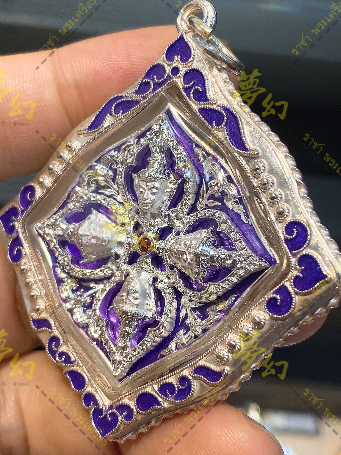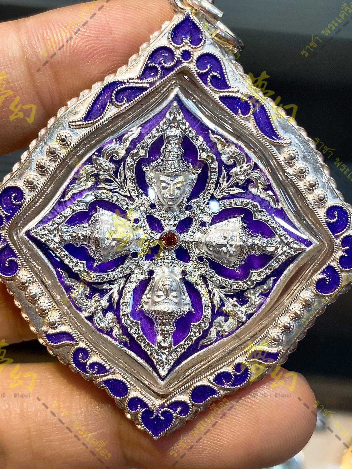 龍婆禪南、龍婆Gee 當代四面神大師共同加持 無所遁形照妖鏡 2561 菱形四面神🌟紫色【夢幻佛牌】