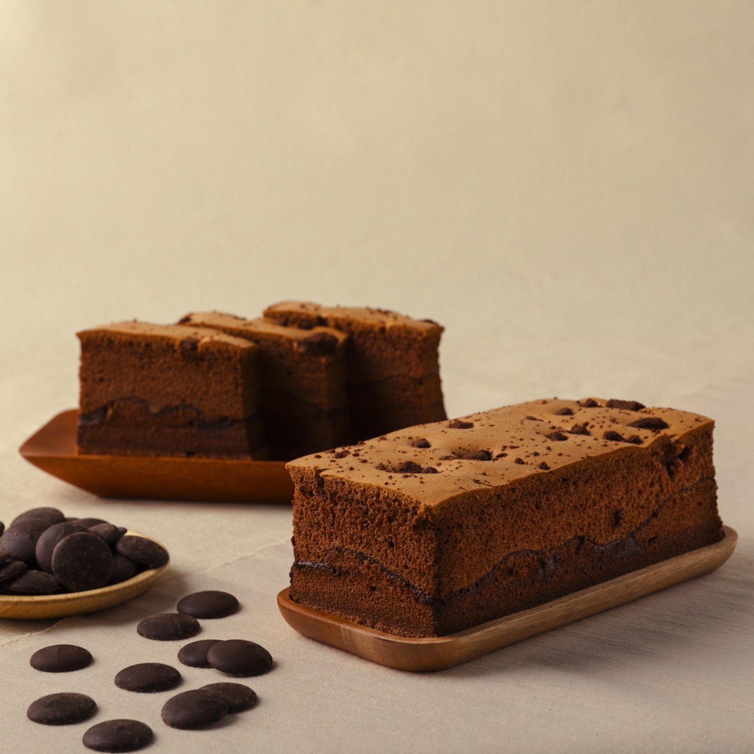 使用巧克力的故鄉,比利時進口貝可拉Belcolade巧克力,苦甜巧克力搭配乳脂35%以上鐵塔鮮奶油,黃金比例讓內層生巧克力內餡有著迷人的風味。常溫時品嚐時,享受巧克力的香濃苦甜,滑順入口;冰著吃,生巧克力的夾層讓口感更有趣,表面撒上手作特製可可酥菠蘿提升蛋糕口感及香氣。