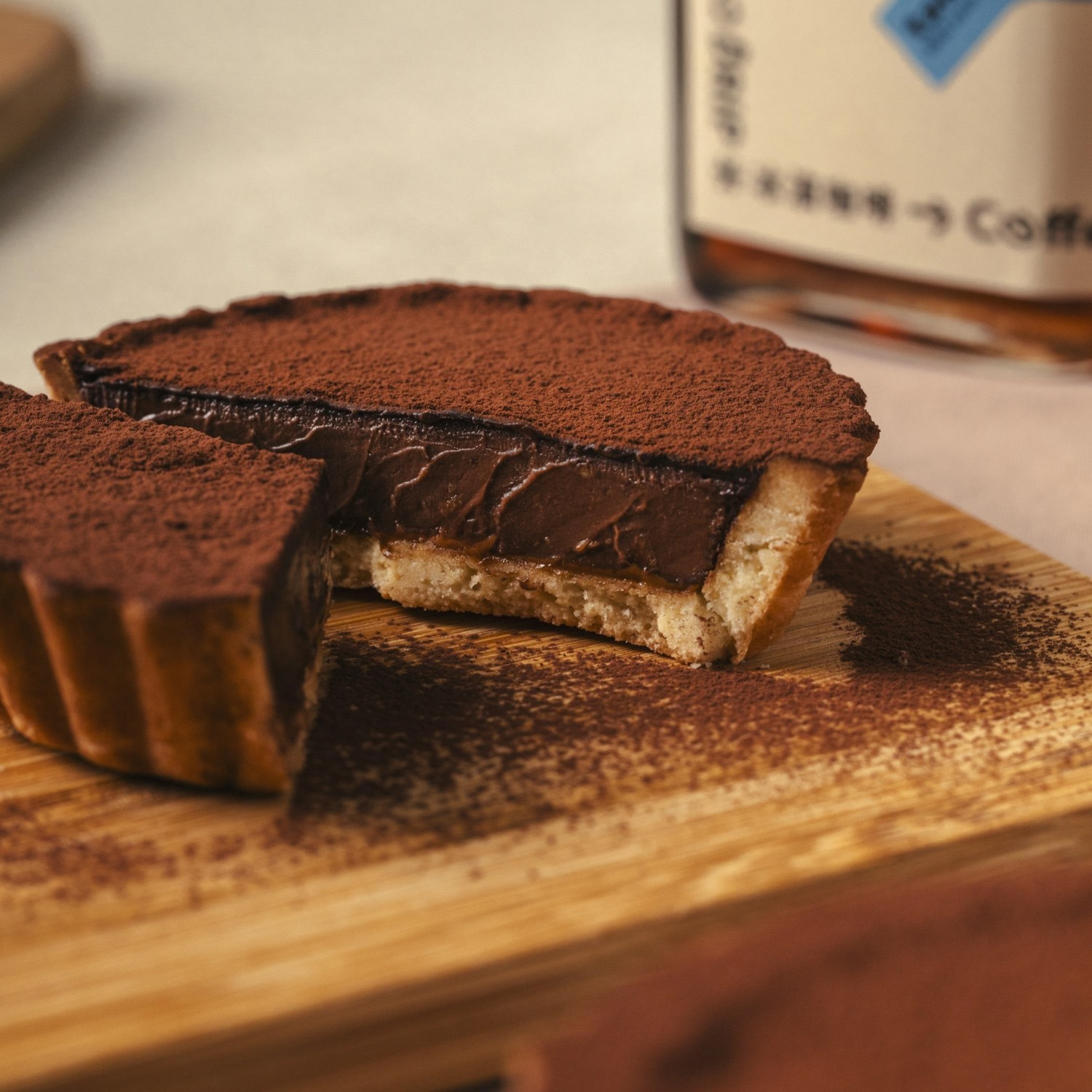 使用70%黑巧克力做為薄脆外皮,中間夾層的生巧克力內餡包覆著榛果醬與榛果粒,最後表面再撒上一層可可粉,低調外表但澎湃的內在油然而生。微苦的外層,加上滑順的內餡,搭配著脆口的餅乾塔皮,真是迷人的滋味。快來感受一下大吉先生對你(妳)的極致寵愛吧!