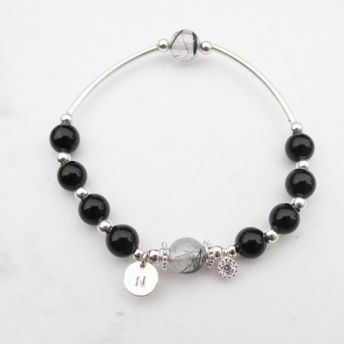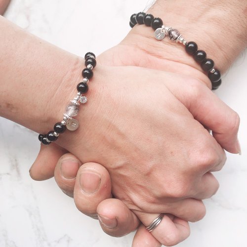 【天然石尺寸】女生款主黑曜石約6mm 黑絲髮晶6mm