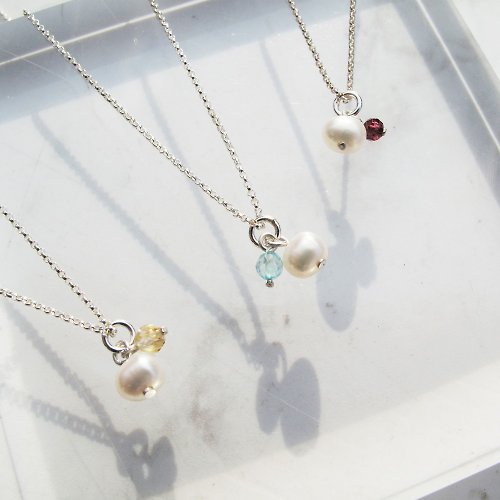 【手工客製銀飾】人魚淚 |珍珠水晶 手工純銀項鍊 耳環| 大員囡仔 - 項鍊 - 珍珠 多色