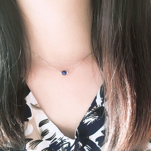 【水晶項鍊】青金石 | 純銀小水晶 正能量鎖骨項鍊 | 大員囡仔