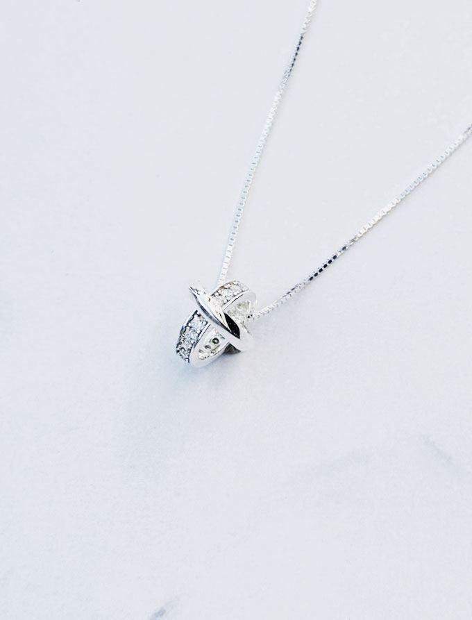 【純銀情侶對鍊】我心與妳 | 環環相扣×鋯石女款項鍊 | 大員囡仔