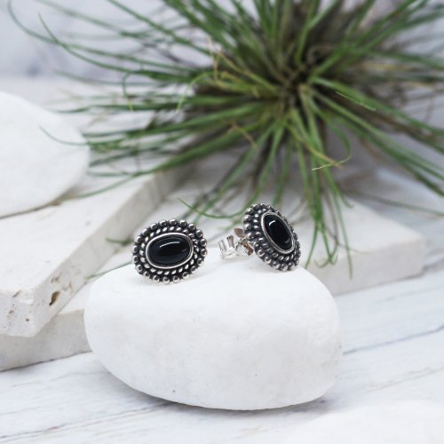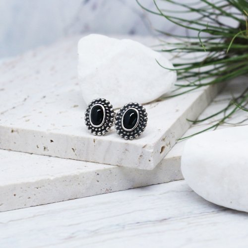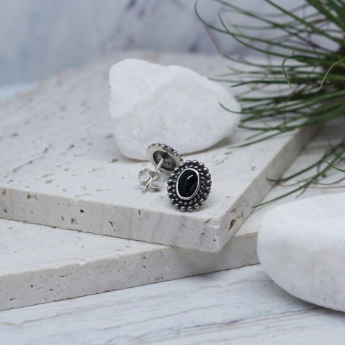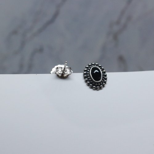 【純銀耳環】黑瑪瑙| 橢圓復古純銀耳環 | 大員囡仔
