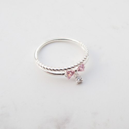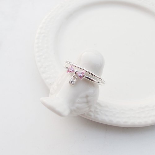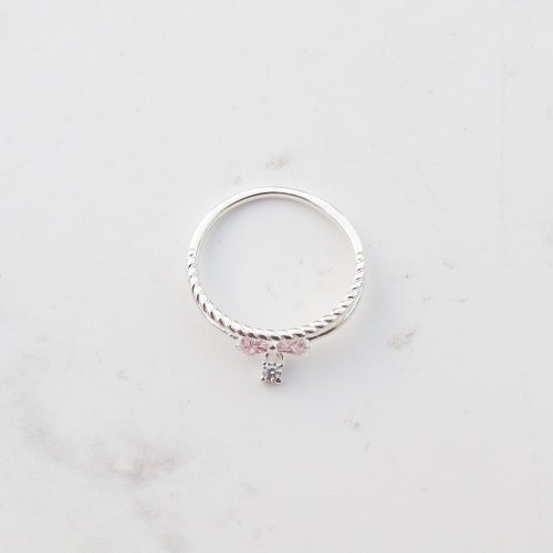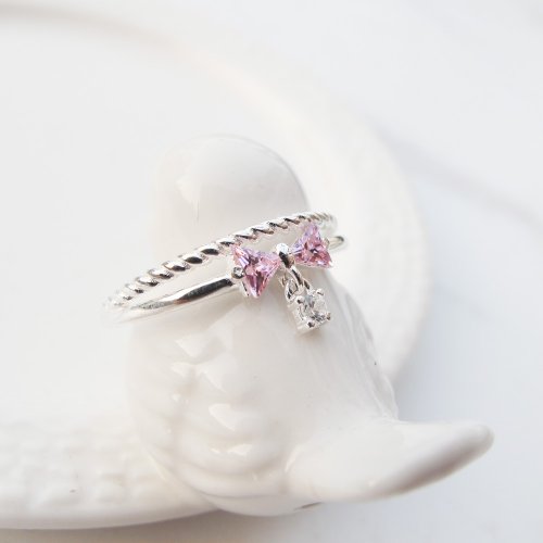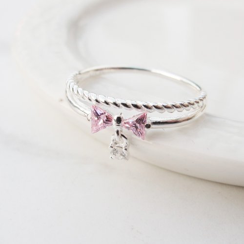 【美鑽銀飾】小公主 | 麻花蝴蝶結 雙圈鋯石純銀戒指 | 大員囡仔