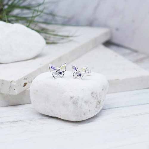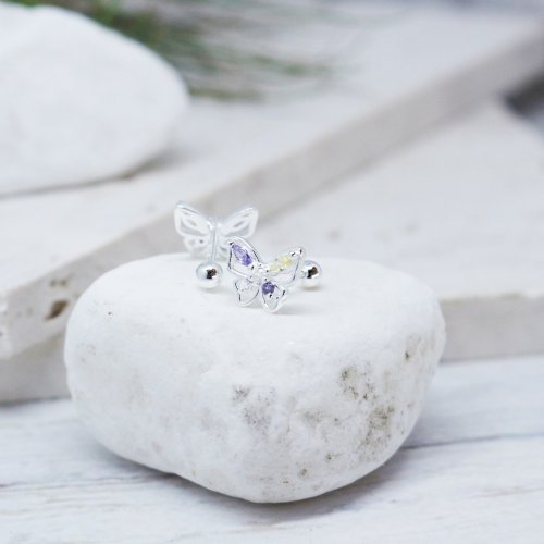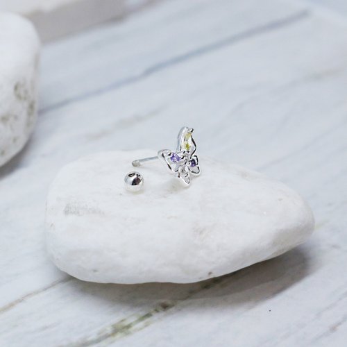 【美鑽銀飾】彩鋯蝴蝶 | 鋯石 純銀鎖珠耳環 | 大員囡仔