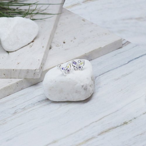 知道女孩們喜歡閃亮卻又怕太過於誇張 閃亮彩色鋯石蝴蝶耳環剛剛好的低調時尚
