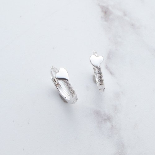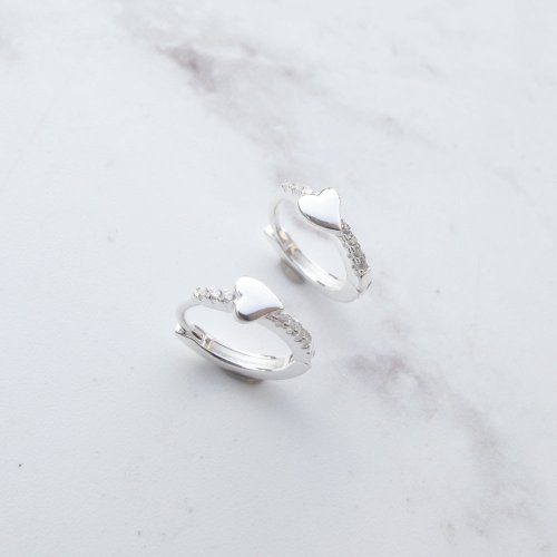 ★有別以往細管的圈圈耳環,這款寬度才1.2mm在鑲崁上鋯石搭商一顆愛心 讓這副耳環隨光源照射之下都會亮亮的,很適合女孩配戴。