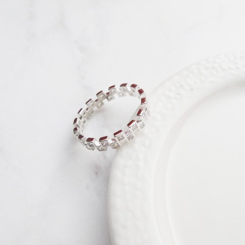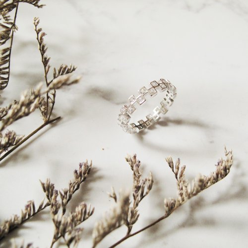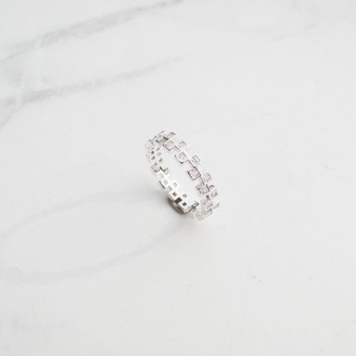 ★有別以往細管的圈圈戒指,這款寬度才1.2mm鑲崁上不對襯方鑽鋯石 讓這款戒指隨光源照射之下都會亮亮的,很適合女孩配戴。