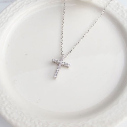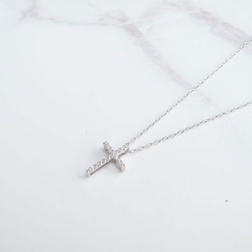 【美鑽銀飾】滿鑽十字架 | 純銀鋯石細項鍊(可雙面戴) | 大員囡仔