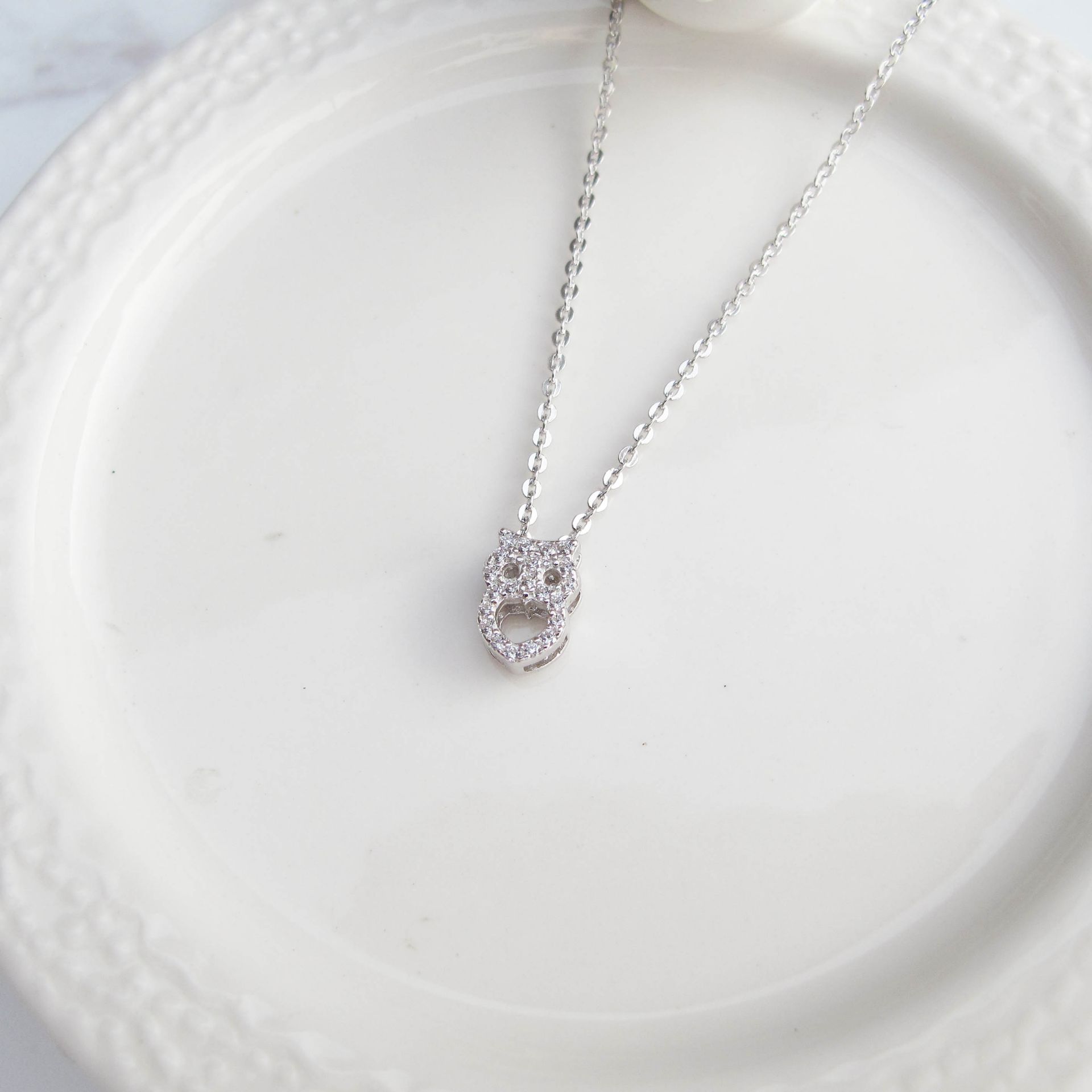 【美鑽銀飾】迷你貓頭鷹 |滿鑽925純銀項鍊(可雙面戴)| 大員囡仔