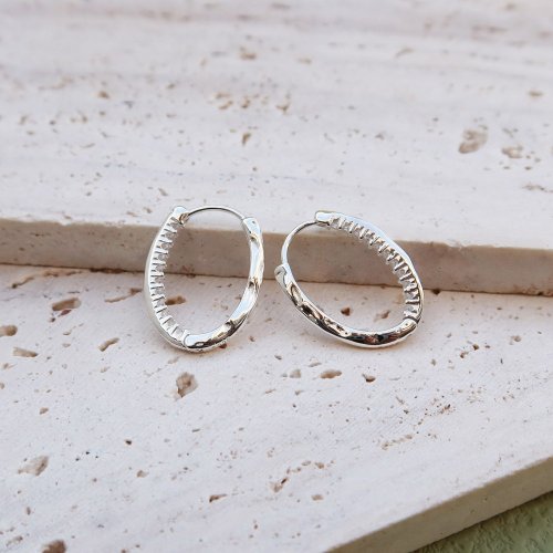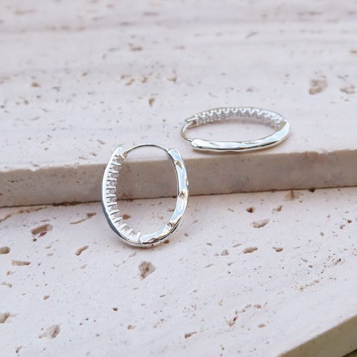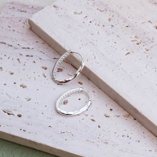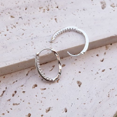 這款有別以往的易扣圈圈耳環,橢圓造型外圈素面,鋯石鑲在裡面!
