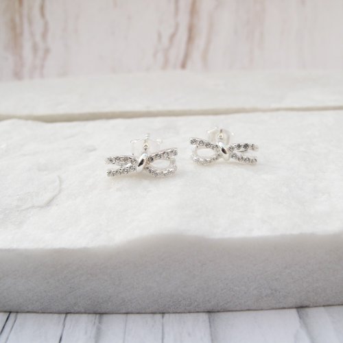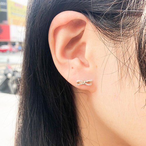 【美鑽銀飾】閃閃蝴蝶結 | 鋯石 氣質純銀耳環 | 大員囡仔 - 耳環/耳夾/耳骨夾 - 純銀 銀色【美鑽銀飾】閃閃蝴蝶結 | 鋯石 氣質純銀耳環 | 大員囡仔 - 耳環/耳夾/耳骨夾 - 純銀 銀色