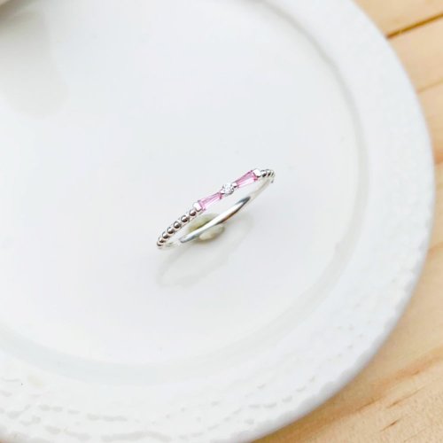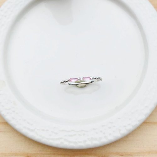 【美鑽銀飾】  蝴蝶結|銀珠| 粉色鋯石純銀戒指 | 大員囡仔 - 戒指 - 純銀 粉紅色