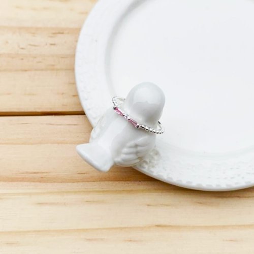 【美鑽銀飾】 蝴蝶結|銀珠| 粉色鋯石純銀戒指 | 大員囡仔