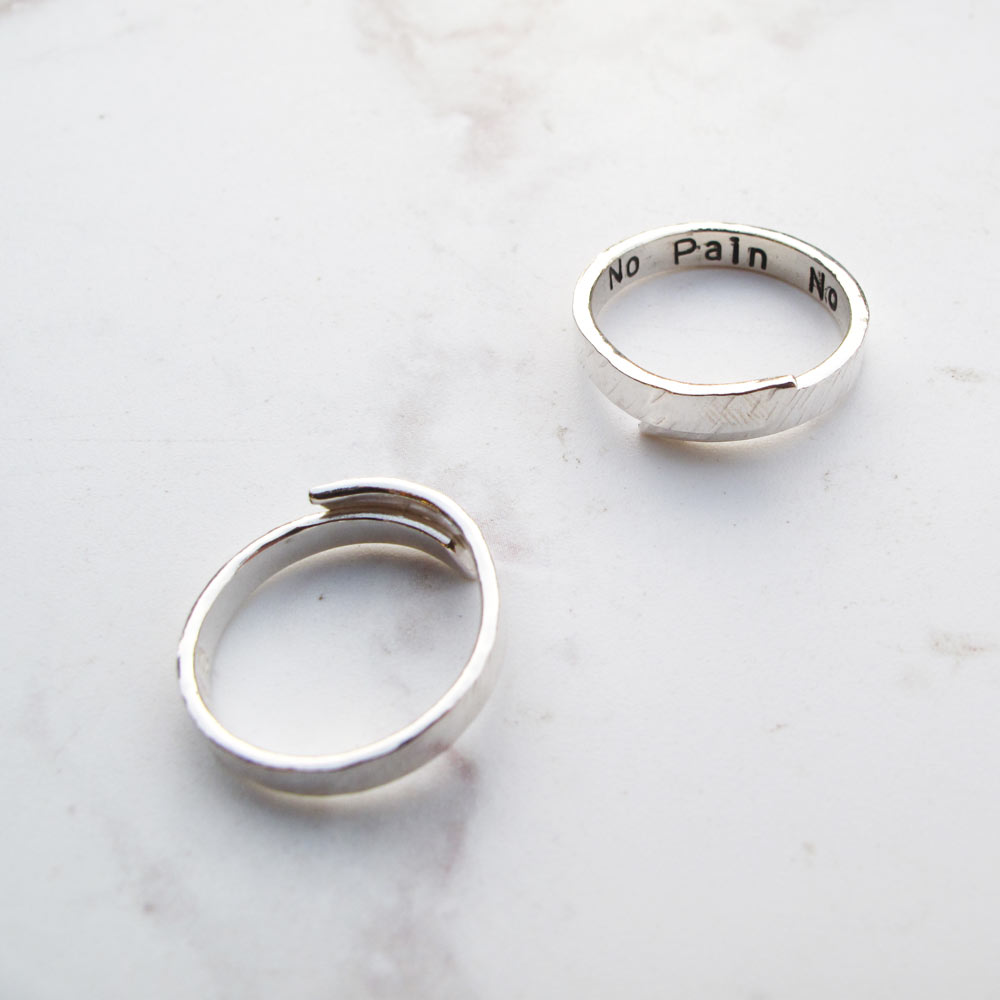 ●可打字在戒指的內側或外側(建議內側),文字為英文字 / 數字 / 圖案