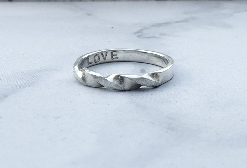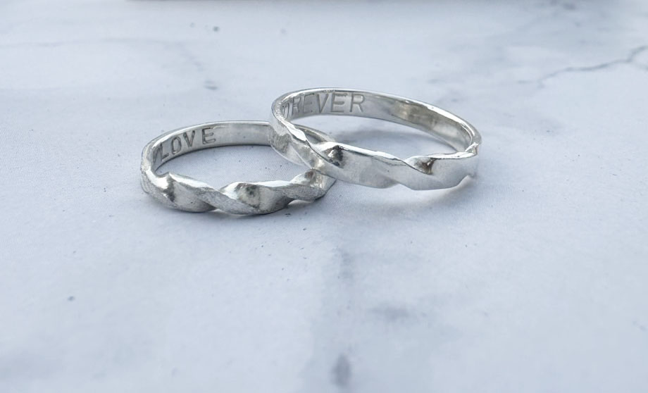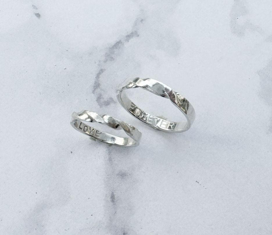 ●可打字在戒指的內側,文字為英文字 / 數字 / 圖案