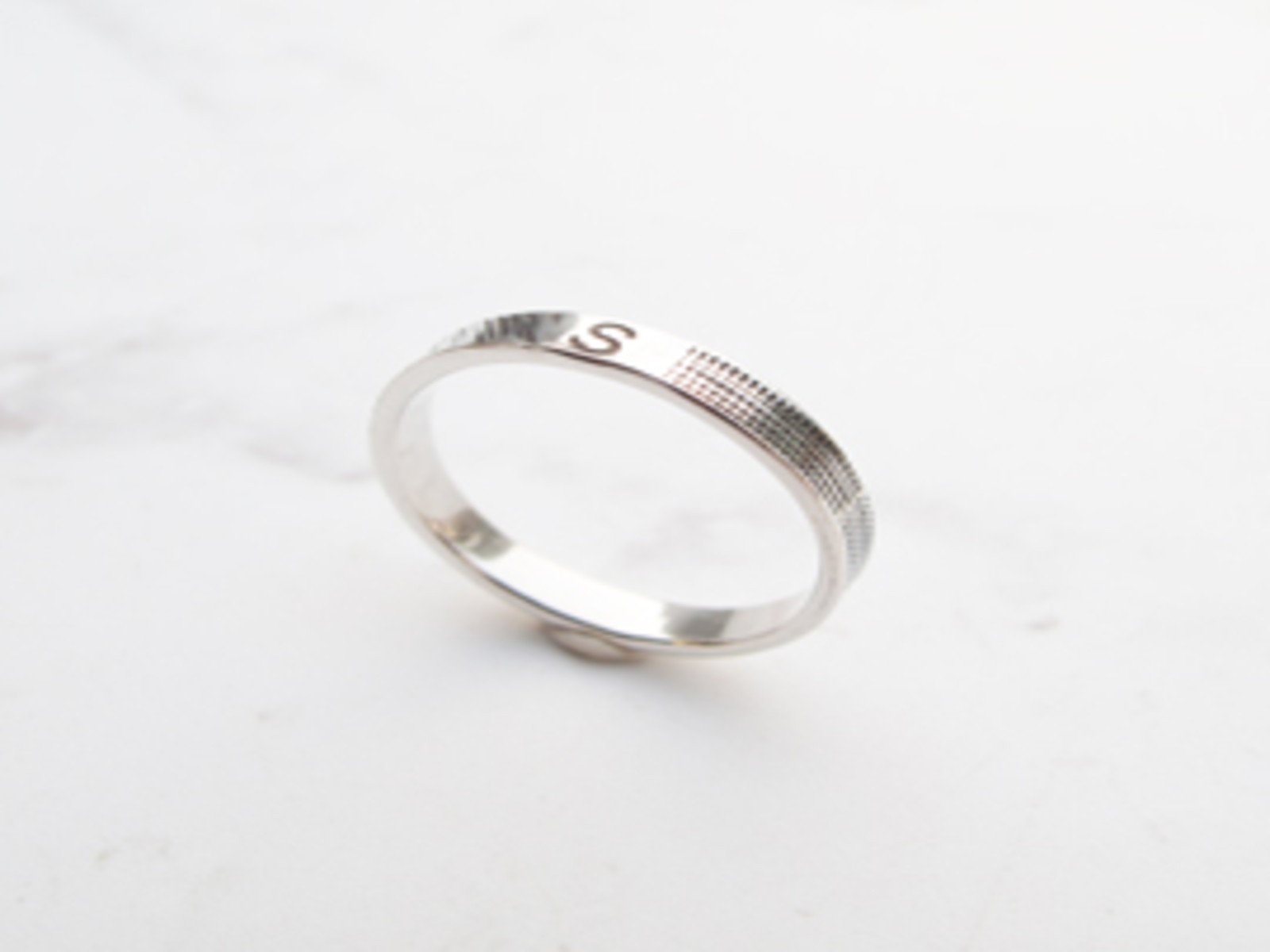 ●可打字在戒指的內側,文字為英文字 / 數字 / 圖案