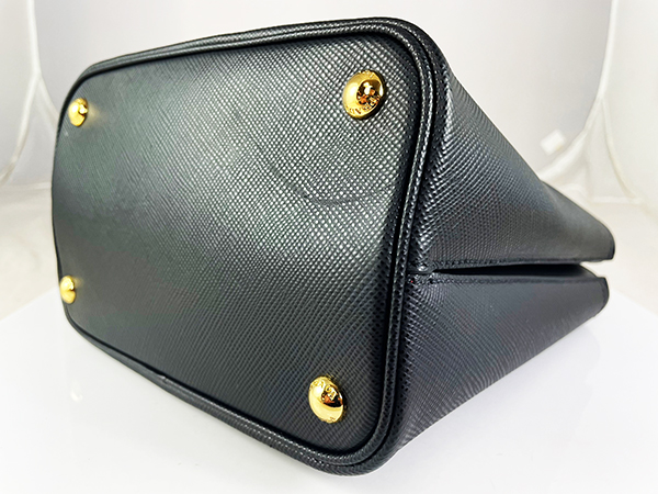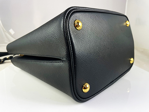 Saffiano 皮革的獨特紋理更加突顯此款 Prada Panier 包的優雅設計。搭配可拆式肩背帶與飾有金屬標誌的專屬皮革姓名標籤。