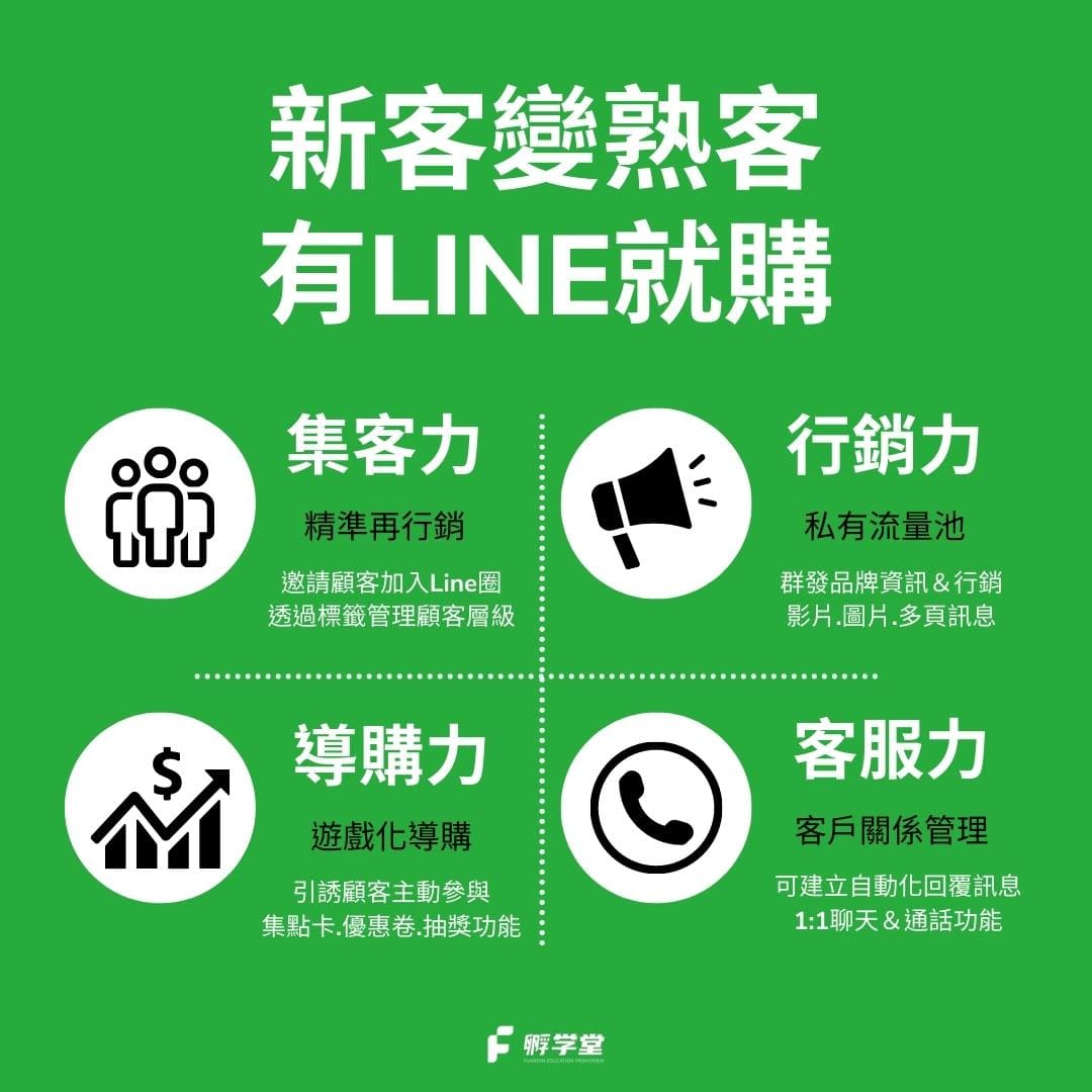 您知道嗎?高業績設計師都善於經營舊客回流。 無論新客或熟客,消費動機通常是被動的。運用官方LINE可協助您輕鬆經營顧客關係,並記錄顧客喜好與消費經歷。透過個人化推播行銷工具,24小時自動化幫您提高顧客回店率。 本課程專為無基礎學員設計 手把手教授基礎功能&實務應用 透過課程內容 邊學邊建立官方LINE 課後立即開啟您的線上客服 打造專屬於您的私域流量池 ▶︎ 官方LINE推播行銷工具:可發送導購訊息&1對1聊天,還有抽獎、集點卡、優惠券等免費功能,讓您的行銷活動更多元便利。