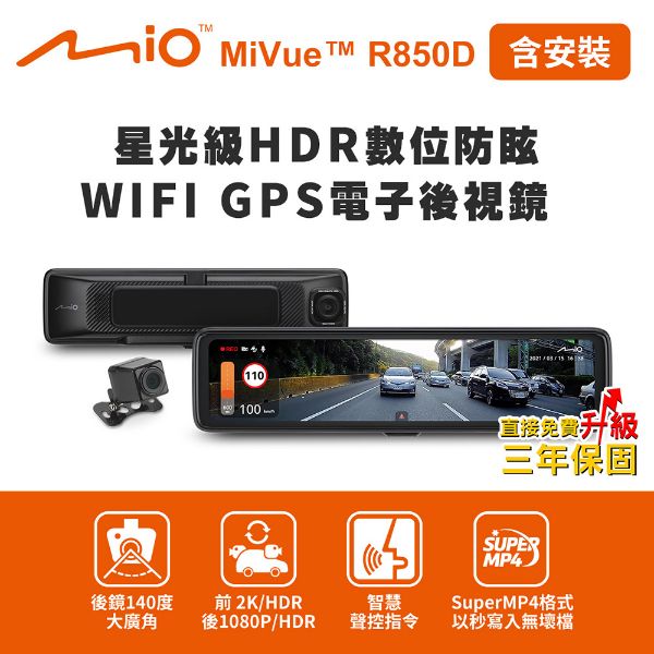 含安裝 Mio MiVue R850D 星光級HDR數位防眩