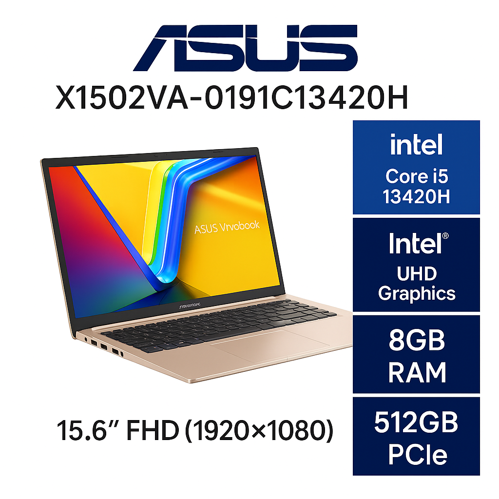 ASUS 華碩Vivobook 15 15.6吋效能筆電蜜誘金色(i5-13420H/8GB/512GB/WIN11/X1502VA-0191C13420H)🎈送保護套/滑鼠墊/鍵盤膜🎈