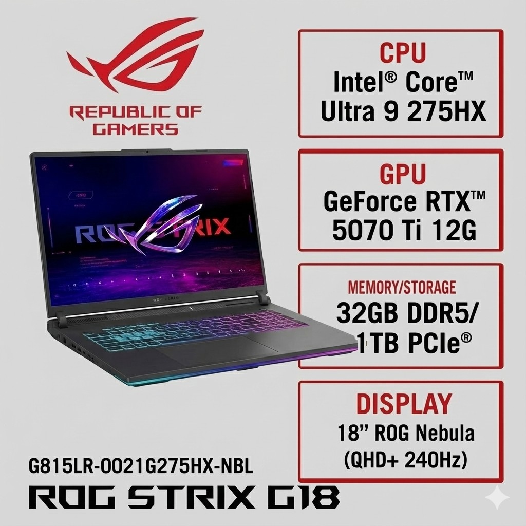 ASUS ROG 華碩Strix G18 18吋電競筆電 黑(Ultra 9 275HX/32G/1TB/GeForce RTX 5070 Ti-12G/G815LR-0021G275HX-NBL)🎈送保護套/滑鼠墊/鍵盤膜🎈