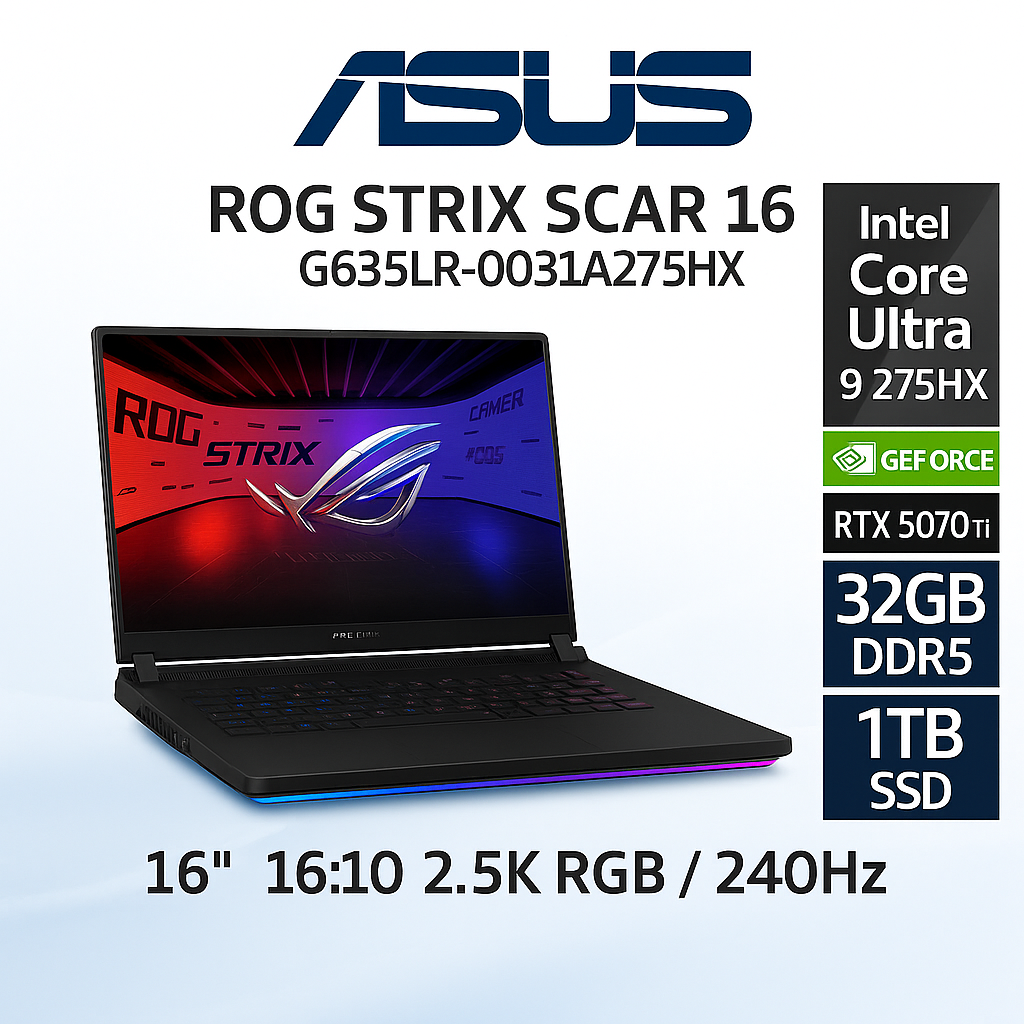 ASUS ROG 華碩Strix SCAR 16 16吋電競筆電黑色(Ultra 9 275HX/32G/1TB/RTX 5070 Ti-12G/W11/G635LR-0031A275HX-NBLM)🎈送保護套/滑鼠墊/鍵盤膜🎈
